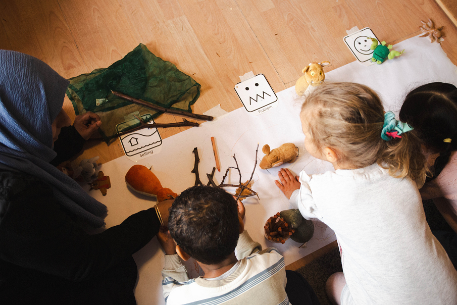 Tales Toolkit is a structured, play-based approach to storytelling that centres on four core elements: character, setting, problem and solution. Using real objects, shared talk, and imaginative play, children are supported to co-create stories, explore emotions, and solve problems collaboratively.